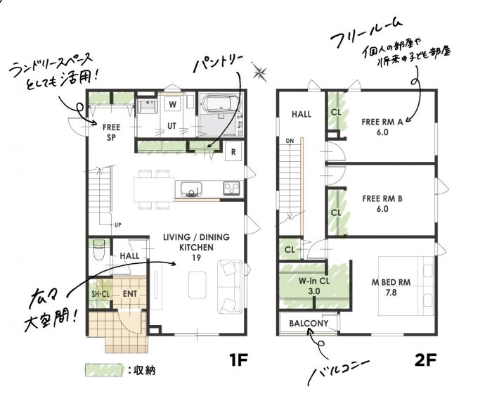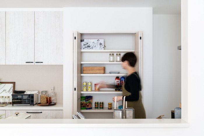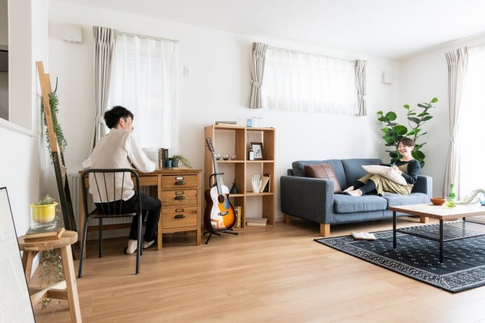 リビングの空間を広めに取ることで、お互いの気配を感じながらそれぞれの時間を過ごすことができる間取りです。